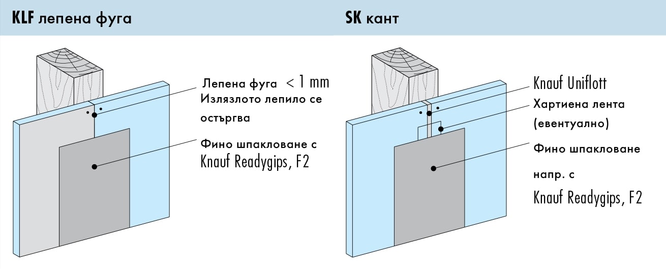 When installing the bottom cladding layer or below the installation plane, panels should be mounted tightly next to each other. The joints of the upper layer should remain open and be filled with Uniflott, along with paper tape.